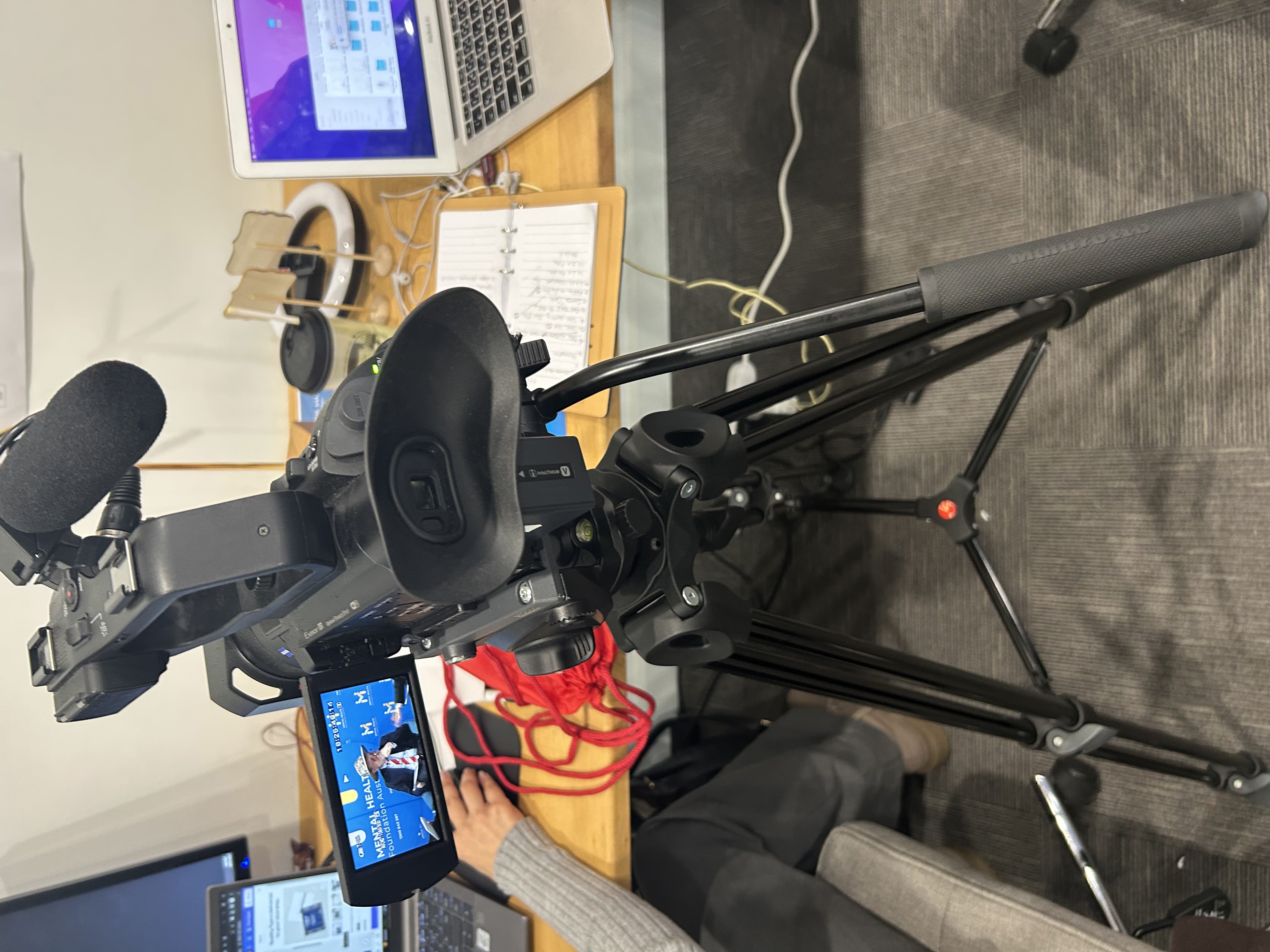 These are some behind-the-scenes pictures of me while filming for MHFA (Previous employer)